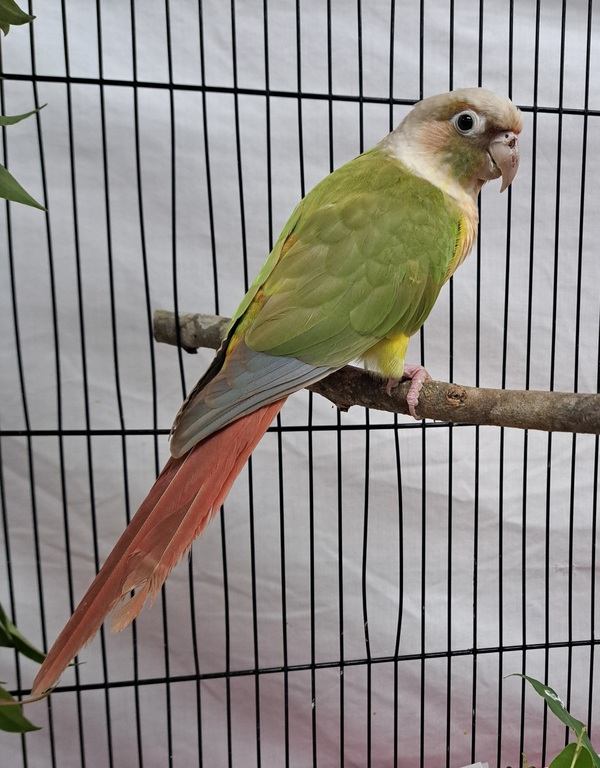 I love to be with people and with other birds. Perching on your head is the best, and I'll step up for any kind of treat you wanna give me - but no head scratches, please, 'cause I think fingers themselves are a little scary! I could use a little flight time though, 'cause I might love treats a liiittle *too* much (tee hee)!