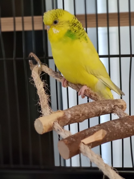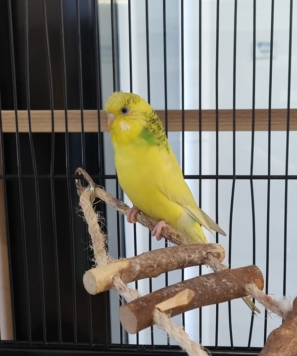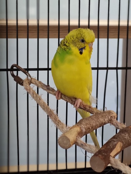 Honeysuckle is a charming and gentle budgie with a bright personality who enjoys spending time near people and observing the world around it, making Honeysuckle a delightful companion for a calm and caring home. With patience and kindness, Honeysuckle will quickly build trust and reward you with the curious and affectionately energetic nature of budgies.