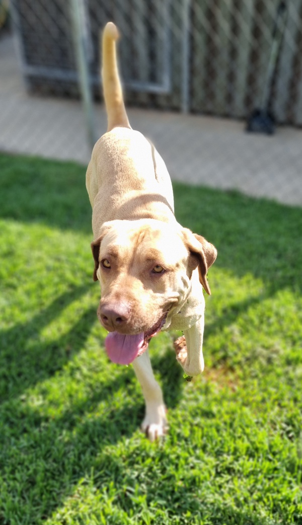 Meet the big, beautiful and goofy Dotty! Dotty is a people person who would love to go home with a family who is home more often than not and to be included in family activities, as she does have some separation anxiety. Due to her size Dotty would be best suited to older children or children who have grown up with large dogs and can handle having this big girl lean on you for pats and cuddles. Must meet other dogs at time of adoption Dotty is social and tolerant to other dogs but is noted to be a bit goofy around them. Must have solid fencing and to be left indoors when home alone as she has jumped fences before when her separation anxiety has been triggered. If you want to add a big loveable lady to your life, come and meet Dotty!