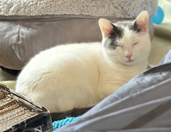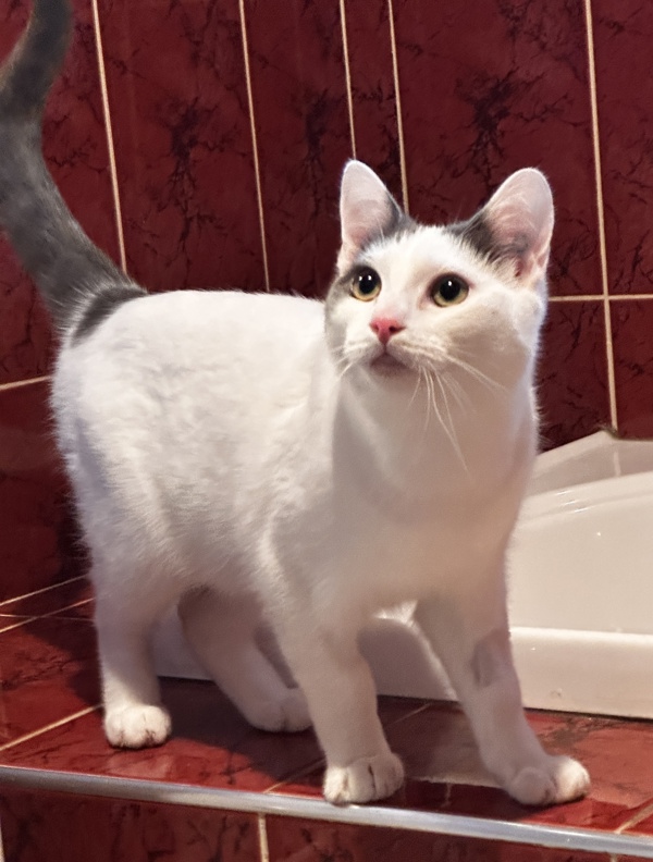 Meep is an affectionate, curious kitty who hasn't had the best start to life, and is looking for a patient, gentle household where he can come out of his shell and learn to trust the world. Meep loves to play, and loves tasty treats, which he will take gently out of your hand! While he might be slow to warm up to people, also loves pats and chin scratches. Meep is quite cat social, and would likely benefit from a household with another friendly role model cat in it. Meep's ideal home is one with adults and cat-savvy teens, with a patient and gentle approach. He would love access to a cat tree, and would thrive with daily play sessions, which will help him to build up his bond with his new people. In time and with lots of love and understanding, Meep will become your loyal and loving shadow!