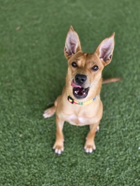 An active, busy girl, Abby will thrive with daily play once comfortable. New toys can be scary at first, so sessions should always stay positive. She can become easily aroused, so ongoing basic training, impulse control, and "four paws on the floor" work will help her succeed.