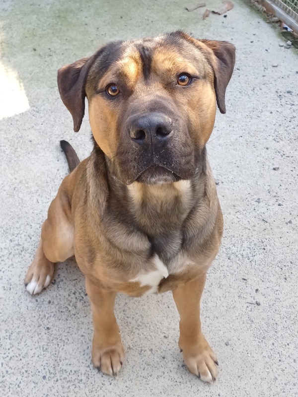 Bruno is a handsome, lively boy with a big heart who's ready for a fresh start. He enjoys gentle attention and will happily offer his paw for a treat. Bruno already knows his name, can sit, and loves to "boop" your hand for a reward. He's smart, eager to learn, and does best with positive training and a steady routine.