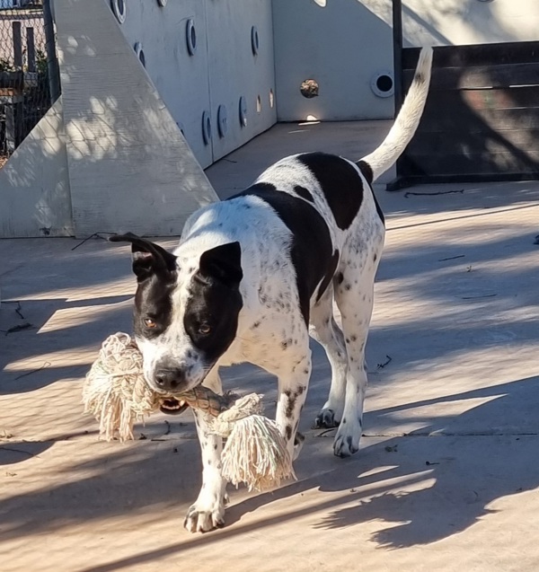I'm a fun-loving, happy boy who can't wait to find my forever family! I'm full of energy and love to play fetch, tug-o-war, and any game that lets me show off my zoomies. Treats are my favorite thing ever (well... maybe tied with cuddles!), and I'd do great with some positive training to help me be my very best self.