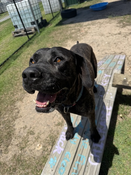 Hi, I'm Bundy, a gentle giant with a heart of gold. I'm a 5-year-old Neapolitan Mastiff, and my calm, loving nature will melt your heart. I thrive on kindness and patience, and while I might need a little time to settle into my new home, once I feel secure, I'll be your loyal companion for life.