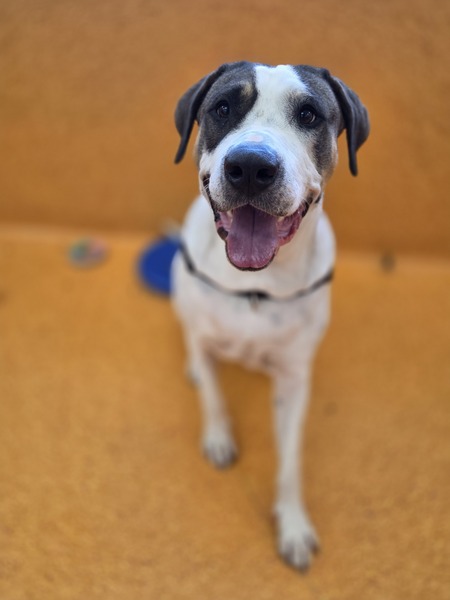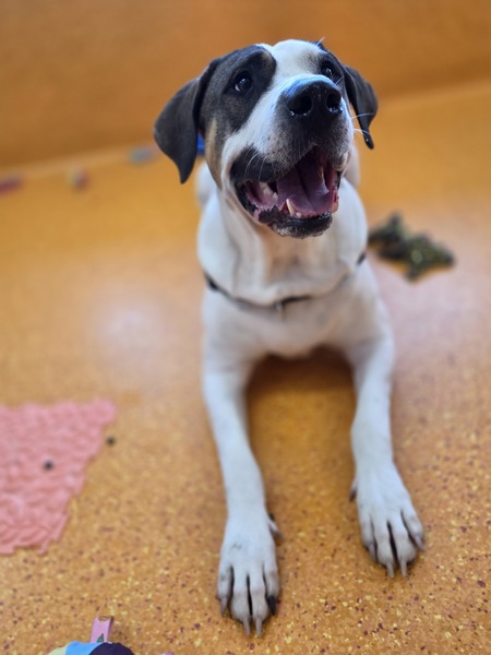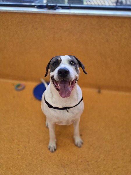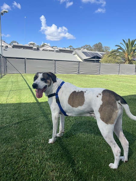 Buddy is a big, playful lad with a goofy charm and a heart as big as he is! He's eager to please, knows sit and lie down, and loves learning - especially when treats are involved.