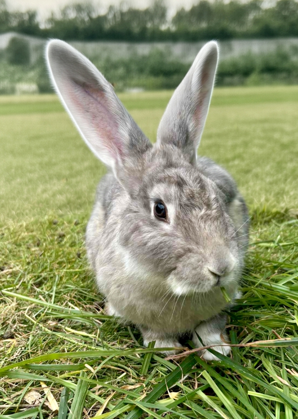 Shadow is a young male Flemish Giant with a lovely, calm nature. He's quiet and gentle, a big-hearted companion who enjoys peaceful moments and slow, relaxed interactions.