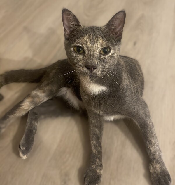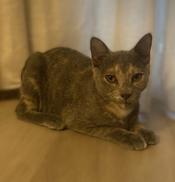 Glinda is a stunning Lilac Tortie with a big personality and an even bigger voice-she's not afraid to chat and let you know what's on her mind! She's also the best little baker, kneading away with love. Her unique curly tail makes her extra special and one-of-a-kind.
