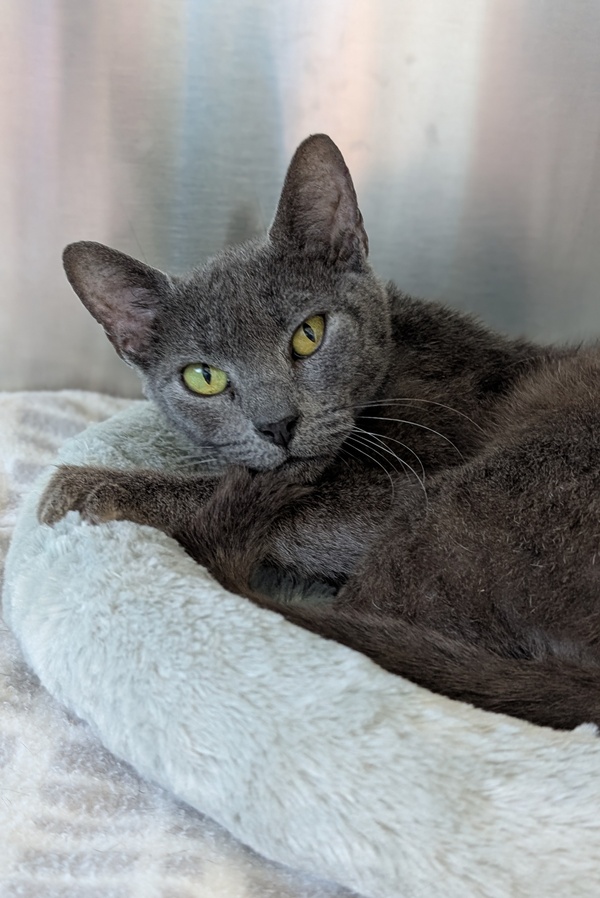 My name is Lavender! I am a beautiful grey girl looking for my forever home! I came into care in a pretty bad way but with lots of TLC I have really flourished. I was so underweight when I came in that staff didn't know I was pregnant! And after a traumatic birth that ended with an emergency c section I have 3 healthy babies! Now that they are looking after themselves and don't need me anymore I am looking for a new place to call home. I am a very sweet and affectionate kitty but I am not afraid to tell someone off if they get too much, so a home with no little ones please. My previous life had me living with lots of other cats so in theory I could have a kitty housemate but I have not been the biggest fan of the cats I have met here at the shelter, so slow and proper introductions are a must. I am a low energy girly even though I am still young. I am happy to just laze the day away. So if you are looking for a chilled out companion, I may be your girl!