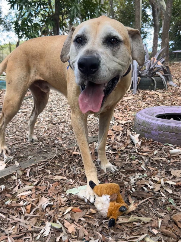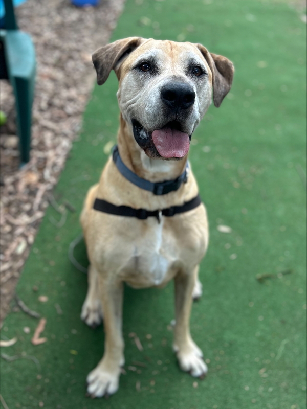 Hi, I'm Wilson! I might be an older guy, but I still have lots of energy! I absolutely love going for my daily walks and will bark at you if you're taking too long! I can get a bit too excited and pull but I'm a very good listener and will slow down if you ask me to! I'm a pretty chill guy, I walk well with the other dogs here, I even ignore their silliness, but I don't appreciate them invading my space. So will definitely need a home with no pestering dogs please! I could be open to another older chill female, but preferably an only dog home where I can get all the loving! I can take some time to warm up to people I don't know, but once I trust you, I absolutely love you! I turn into a goofy boy during play time; I love playing tug with you and fetching the ball! I can be a bit silly during tug and grab where you're holding but if you tell me to leave it, I'll listen straight away! Now because I'm a bit of an older guy I do have some stiff joints, but that can be easily managed and other than that I'm in perfect health! So, if you think I'm your perfect match then come meet me today!