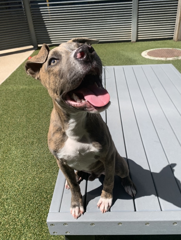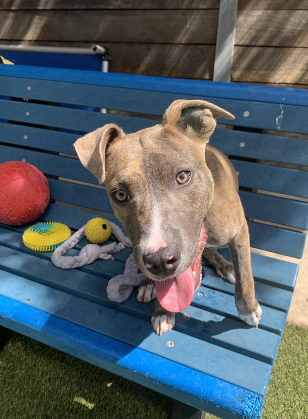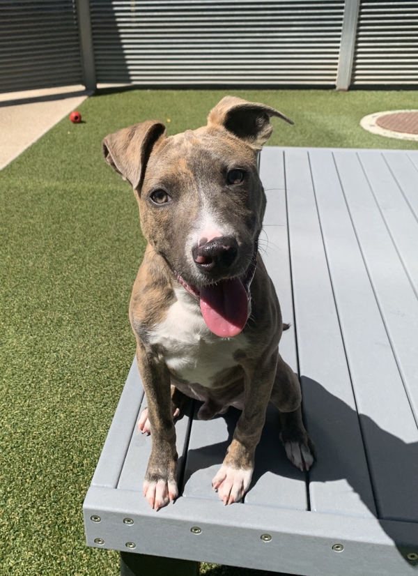 Meet Kid! This sweet pup is a quick learner and eager to please. He will thrive in a calm, routine home where he can receive consistent training and plenty of outlets like toys, games and enrichment to help manage his extra puppy energy. Kid will benefit from continuing his training in puppy classes where he can build his confidence, develop his skills and safely socialise with other dogs. His new family will need to be active and physically capable of handling a strong young dog. Kid does not quite know his own strength yet and can be a bit much for young children, so a home with teens and adults will suit him best.