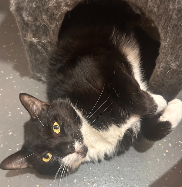 Hello! I mean Meow! My name is Benji! I am a handsome Tuxedo man looking for his new home. I came into care with my brother and mother after our owner fell on hard times. Though we have been living together for 6 years we aren't super bonded and do not pine when seperated so I do not need to be rehomed with my family. As I was living with other cats my whole life I think it would be nice to have a place to call my own but if you have another laid back cat that would be okay too. I am an affectionate gentleman most of the time but am quick to tell you when I do not want to do something, so a home with older cat savvy kids (or no kids) is a must! Staff think my 'tude will tone down in a home environment where I have more space and less stress. My ideal home will be mostly quiet with plenty of hidey holes and sun spots for me to enjoy. If you think you can give me an amazing home, come to the shelter and meet me!