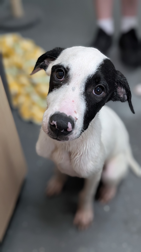 Hey there I am Holstein. My siblings and I are named after cows. Not because of our size but because of our spots! I am a gentle natured boy who loves a cuddle. The world sometimes gets too big for me and I get a little nervous at times but if you speak softly to me or offer me food I will find my brave again! I enjoy playing with my siblings but will regularly check in with the humans. I think I would suit any home as long as they are willing to shower me with love and attention and spend time walking and training me to be the best dog I can be.