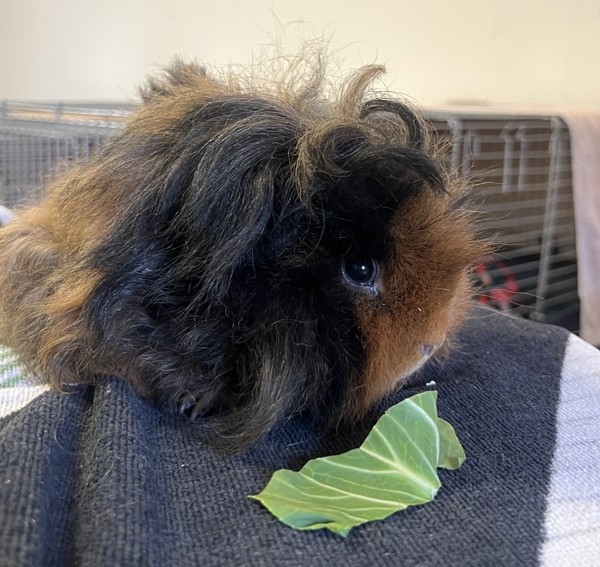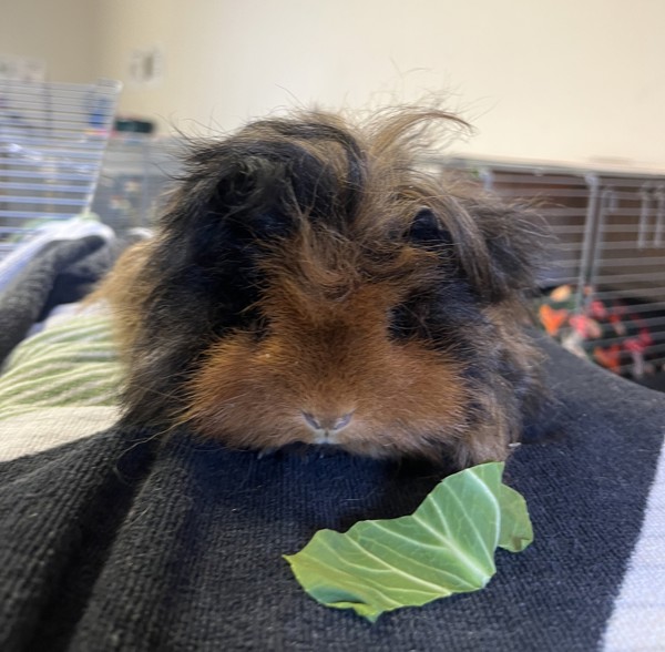 She is looking for a loving indoor home with humans who understand guinea pigs' social and emotional needs. They'd be happiest with plenty of space to roam, comfy bedding, and enrichment toys to keep their bright little mind active. Guinea pigs are social animals, so a gentle guinea pig companion could be a wonderful match-if introduced properly.