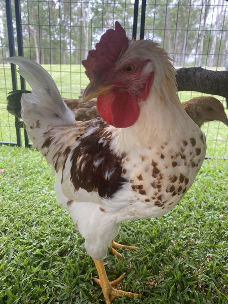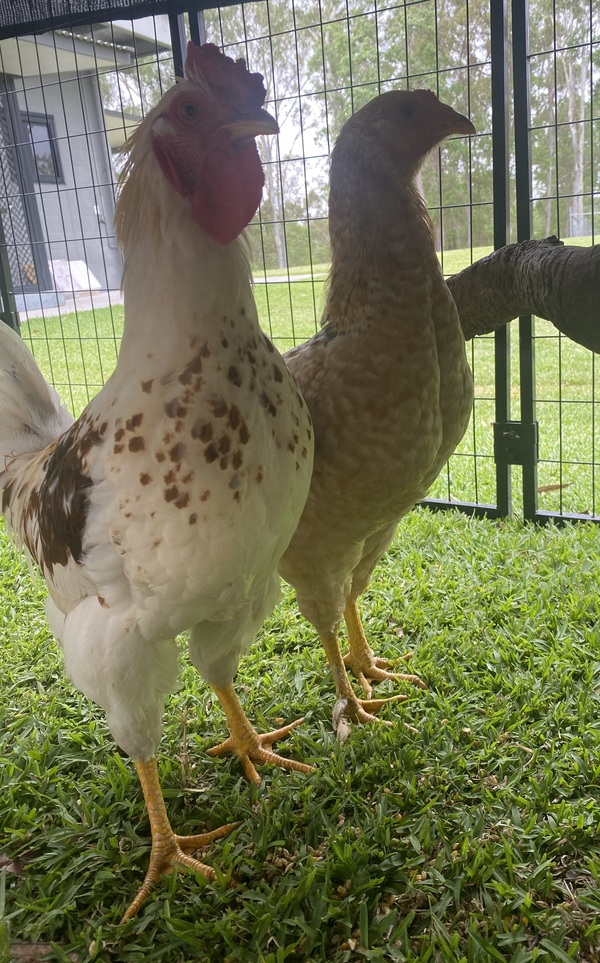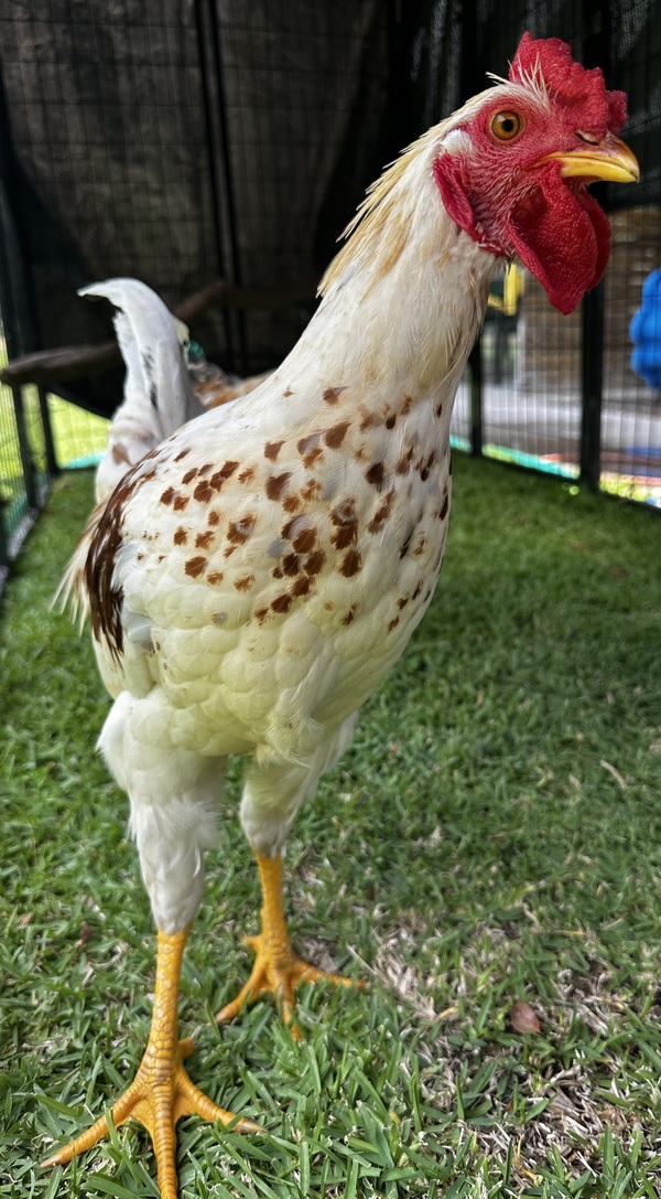 Doc is a confident, gentle young rooster with great flock manners, while Dumplin is a calm, friendly hen with a soft, sweet nature. Together, they bring balance, affection, and harmony to any flock.