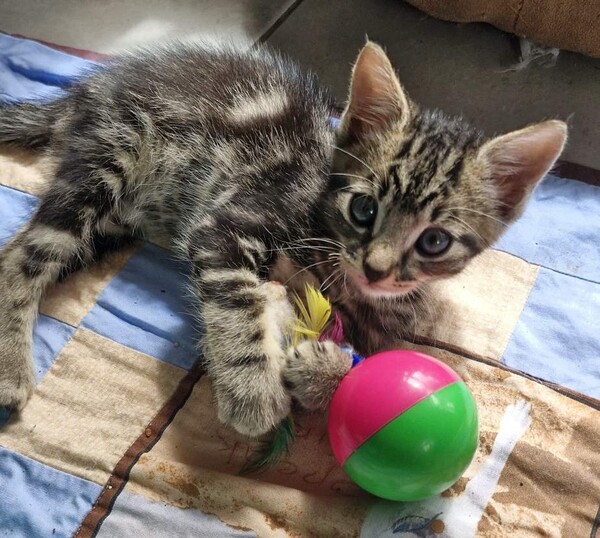 a sweet little brown tabby boy with gentle eyes, soft stripes, and a heart that just wants someone to love. I'm playful, curious, and full of kitten joy, always ready to chase a toy, explore new corners, or quietly sit beside you just to be part of your world.