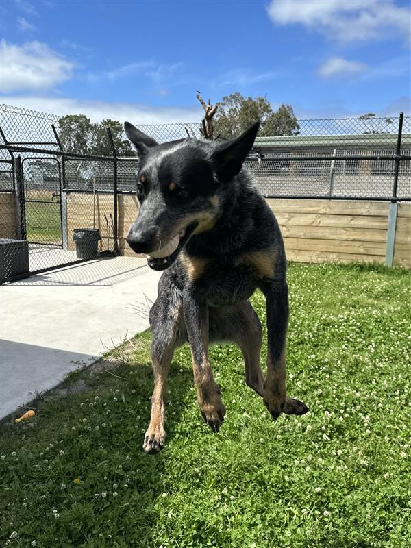Calling all Heeler lovers!Rocco is a 6-year-old Blue Heeler whose world revolves around toys, fetch, and action. If it squeaks, flies, or can be thrown - he's all in. This boy lives to play and will happily launch himself sky-high to catch a toy (seriously... parkour-level skills!).Rocco is high energy, smart, and motivated, with toys being his ultimate reward. Training is fun and engaging with him - he has a few tricks he's mastered, comes when called, and will even politely give things back on cue ("Ta"). He's always on the go in the yard, entertaining himself by using his nose to hunt out treats and bringing toys back to keep the game going.He enjoys daily walks and off-lead time, loves car rides, and settles well at home with indoor access and a doggy door. Visitors are greeted with excitement - often by Rocco dashing off to grab a toy to proudly show them. He's more play-focused than cuddly, but he's polite, responsive, and great fun to have around.Rocco is looking to be the only dog in the home, as he generally prefers to do his own thing. That said, he is open to having doggy friends outside of the home, especially for walks or play sessions where toys aren't the main event (because... priorities!).He would suit a home with respectful children or adults who understand his energy levels and can interact with him appropriately.Rocco is searching for an active home that understands working breeds and can channel his incredible toy drive into games, enrichment, and ongoing training.Got a throwing arm and a love for Heelers? Rocco is ready to play.