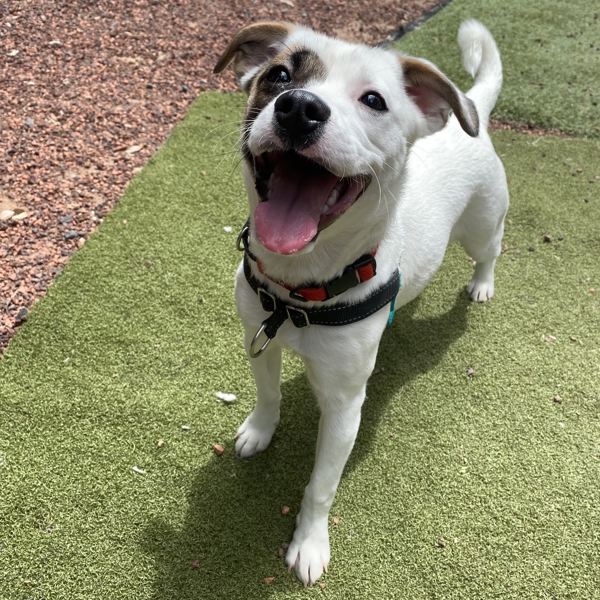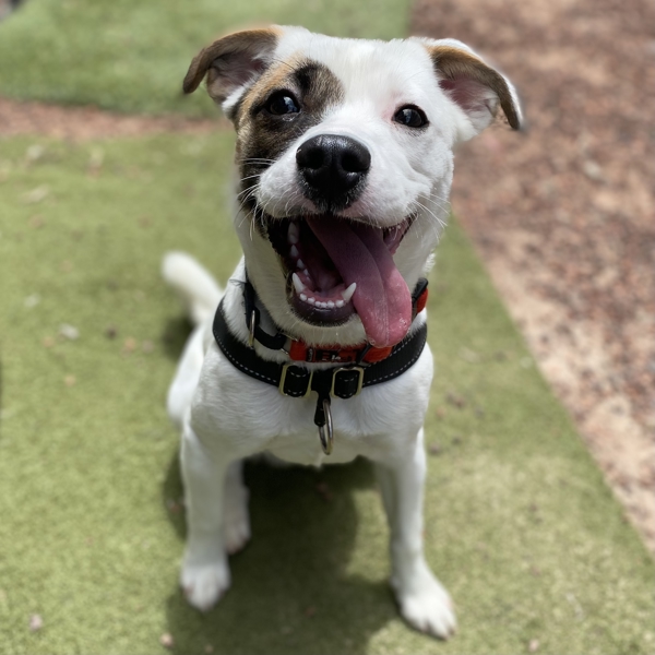 Meet Sheba, a bright, bouncy 7-month-old Staffy mix who's bursting with enthusiasm for life. She's playful, loves pats, and loves engaging with her people - whether that's chasing a squeaky toy, zooming after a ball, or showing off her perfect sit for treats. She's very food-motivated, though still a bit snatchy, so she'll need gentle guidance and good manners training as she grows.Sheba is a high-energy pup who's still learning how to manage her excitement, especially around other dogs. She would love ongoing positive training, socialisation and structure. With the right support, she'll flourish into a fun, clever and well-mannered companion.This sweetheart will suit an active home committed to training, exercise and enrichment. Children may be considered with supervision, and she could enjoy a robust, energetic dog friend pending a meet and greet.If you're ready for a lively, affectionate project pup with heaps of personality, Sheba is eager to start her next chapter.
