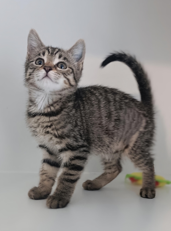 Meet AngelAngel is a super friendly female tabby kitten with a bright, outgoing personality. Curious and inquisitive, she loves to explore her surroundings and be right where the action is. If something fun is happening, you can count on Angel to be part of it!Playful and full of energy, she's truly the life of the party. From wand toys to balls and anything that crinkles, Angel is happy to play with all sorts of toys and will keep you entertained with her joyful antics.Angel is looking for a home where she can share her affection, enthusiasm, and playful spirit. If you want a loving, social kitten who brings fun and happiness wherever she goes, Angel could be the perfect match.