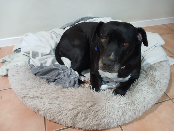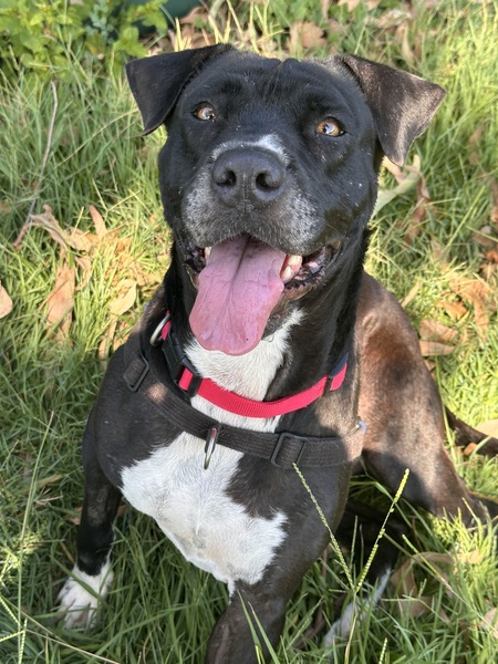 Luna is a goofy, loveable girl with a big heart and an even bigger love for food. She thrives on enrichment activities and would benefit from having her meals delivered through engaging, food‑based puzzles that provide both mental stimulation and help her slow down. Because she adores food so much, she should be fed separately from any other dogs in the home. Luna is a sweet, people‑oriented companion who would enjoy being allowed indoors to spend quality time with her family. She can be a bit worried and submissive with close handling and has a history of possible trauma causing sores and scarring on her legs, so gentle, positive support for vet visits and grooming will help her feel safe. Luna loves rolling in the grass, prefers fresh water straight from the tap, and can get a little jumpy when excited, so she may be best suited to a home with children who can read dog body language. She is dog‑social, playful, and sometimes boisterous, and she would likely enjoy having a friendly, playful canine companion-meeting any resident dog at adoption will be essential.