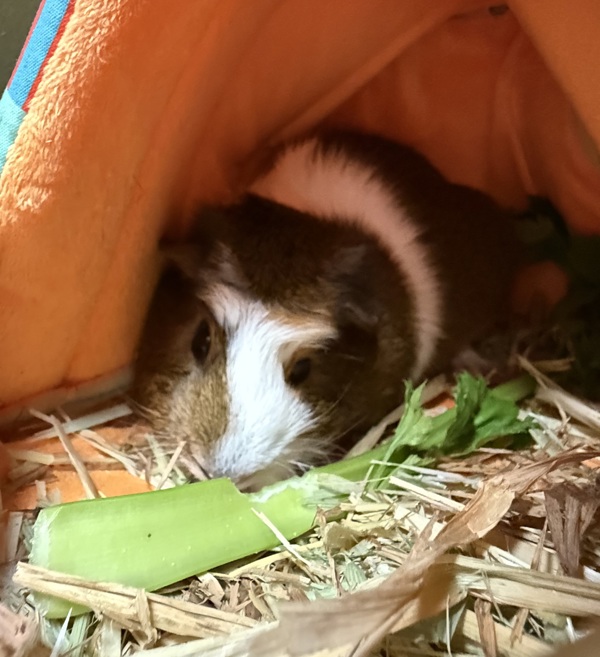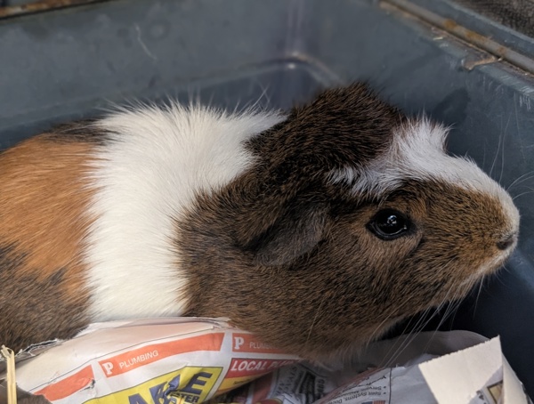 Oreo is hoping for adopters who know (or are eager to learn) the basics of guinea pig care: