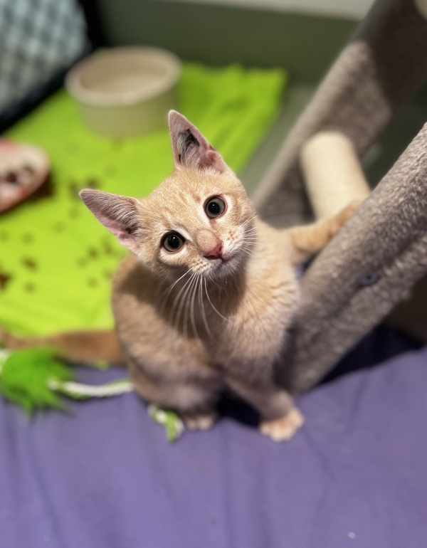 Jaffa is looking for an experienced cat home that understands energetic, expressive kittens. He thrives with structure and will do best with a resident older cat who can teach him boundaries and give him the guidance he needs. He respects confident feline role models and learns quickly from them.