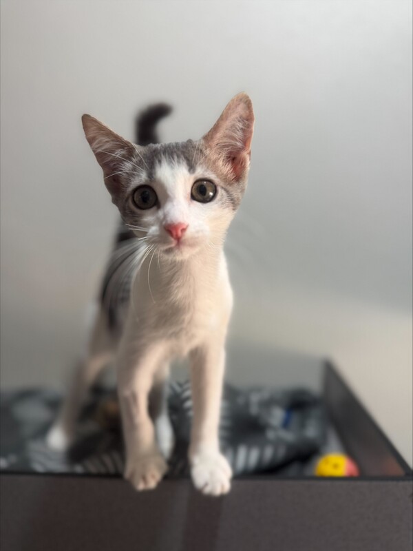 I am a good looking boy with my marking and my personality is just as lovely. I am a fun-loving kitten who enjoys playing with balls, soft toys and climbing high on cat towers. I like older cats and adore people, so I think I would fit in with any household. I only met a small dog in my foster care experience so would need to be introduced slowly if you had any dogs in your family. I have energy to burn so would be a good playmate for older children and a cuddle buddy for adults, so if I sound like the one for you, please come and meet me.