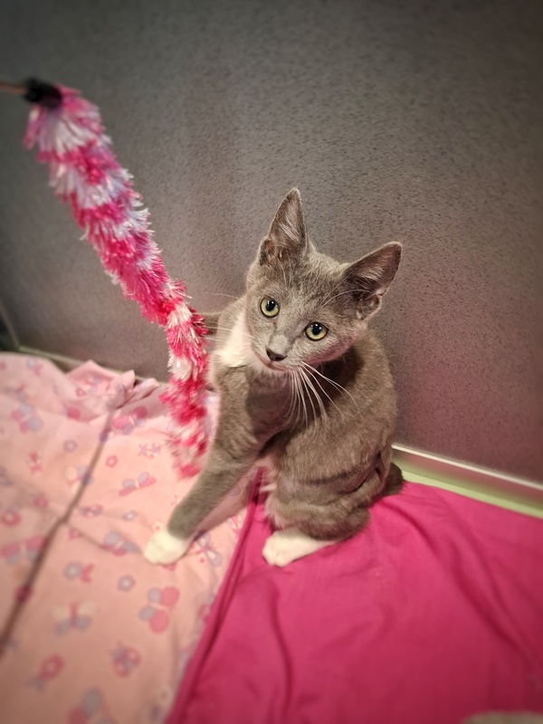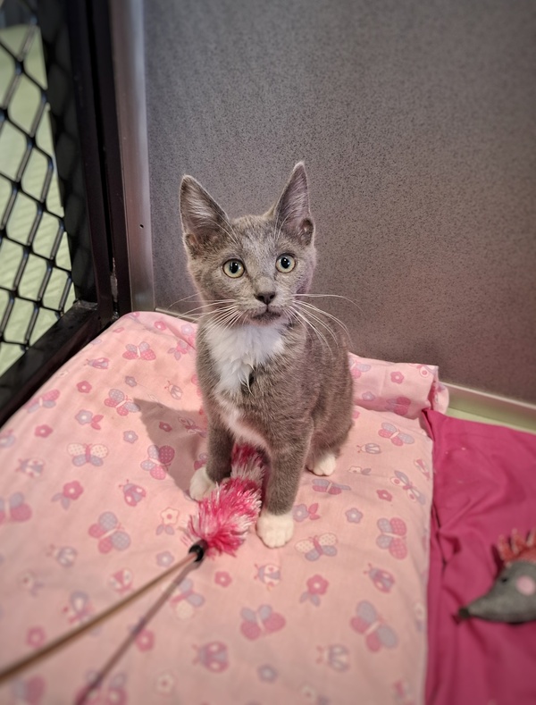 Mittens is a bright, joyful little kitten bursting with personality! She adores her toys, loves her food, and brings happy energy wherever she goes. This sweet baby is confident, curious, and ready to charm her way into her forever home.