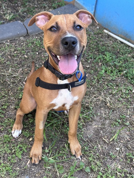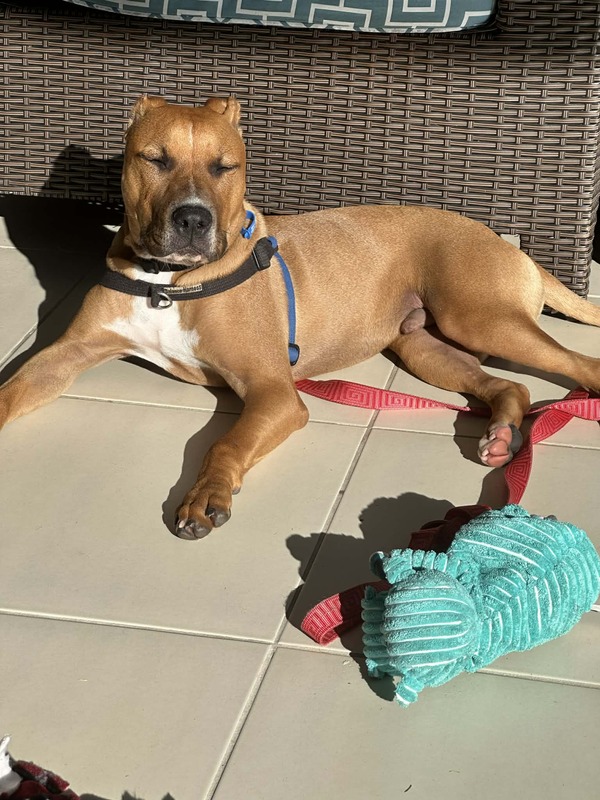In foster care, he's shown just how special he is - relaxed, loving, and completely devoted to his humans (classic bully breed vibes).
