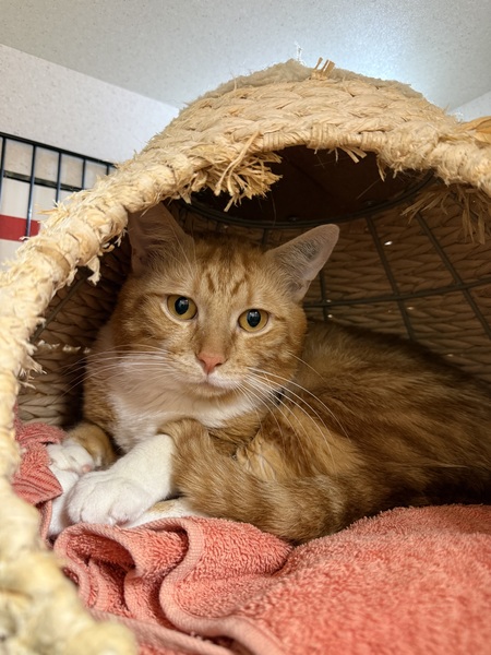 Simba would be best suited to a quiet household, ideally with teens who understand basic cat body language and know when to give him space. He loves cosy hidey holes where he can retreat and relax when he needs some downtime.