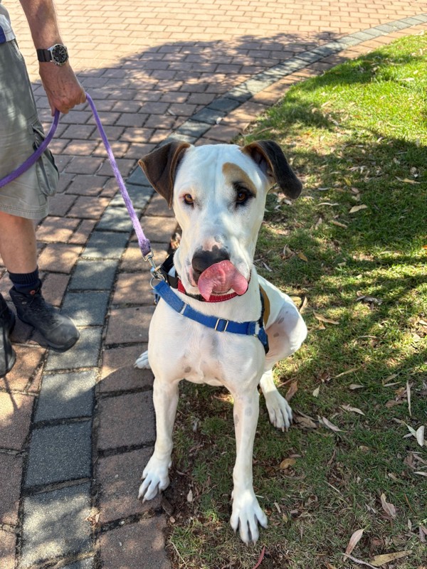Hi, I'm Marley! I'm a 3-year-old large, lanky mixed-breed girl, and not to toot my own horn but I'm sweet, irresistible, and guaranteed to make your day better. I've got a soft heart, a wiggly tail, and a big love for cuddles!I'm a bit of a goof, I admit it. I'm not ashamed to flop onto you for cuddles at the most inconvenient times (it's my special talent). I love treats, gentle walks, and making humans laugh lanky walk.I just love everyone so much! I can live with another dog if we meet first and decide we're a good match- although I would prefer to be an only dog. I'd be happy in a home with full-time workers, so I get lots of company and cuddles when you're around.I'm affectionate, playful, and full of charm, with just enough goofiness to keep life fun. If you want a loyal, loving companion who's equal parts sweet and silly, come meet me - Marley. I promise I'll melt your heart... without the mess!Lots of love,Marley!!!