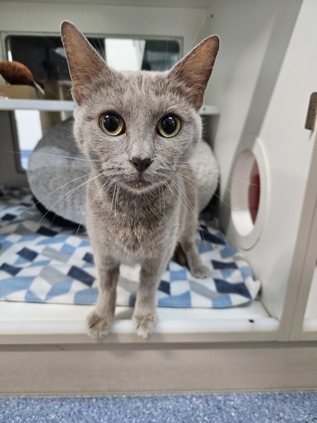Krill is a beautiful grey cat with a soft presence and an even softer heart. She is very shy at first and prefers to take her time getting to know new people and surroundings. Sudden noises and busy environments can be overwhelming for her, so Krill is looking for a quiet, calm home where she can feel safe.Once she warms up, Krill reveals her true self-a loving girl who enjoys gentle cuddles and peaceful companionship. Earning her trust is incredibly rewarding, and the bond she forms is deep and special.Krill needs an adopter with patience and understanding, someone who will let her move at her own pace and celebrate the small milestones along the way. In return, she'll offer quiet affection and loyal love.If you believe the best relationships are built slowly and lovingly, Krill may be the perfect companion for you.Let me know if you'd like a shorter version or one aimed specifically for a shelter listing