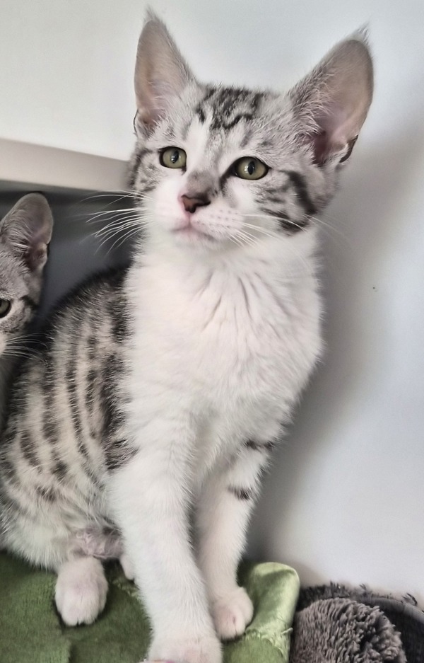 I may be suited to a home with a friendly feline companion who can tolerate my kitten energy! Another cat may also help improve my confidence as I liked playing with my siblings. We would need a slow introduction to each other in the home to ensure we start off our friendship on the right foot.