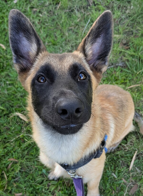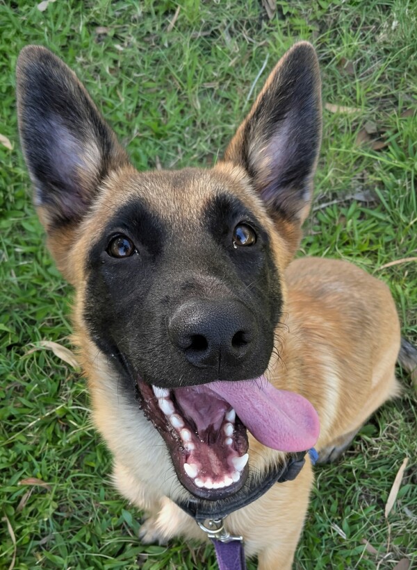 Karma is a sweet, toy‑obsessed young Malinois with buckets of potential and just as much sass, looking for an active, breed‑savvy family who's ready for fun, adventure, and plenty of training sessions! She's no backyard ornament-this clever girl needs to live indoors with her people, go on outings, learn cool tricks, play dog sports, and enjoy enrichment galore (think kongs, puzzle toys, frozen goodies, the works). She will likely be okay with kids of all ages, polite and gentle, though like any growing working‑breed pup she'll need ongoing supervision and guidance. Karma LOVES other dogs and can happily go home with a canine buddy pending a meet and greet.