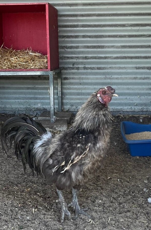 Santa Spur is a handsome rooster with plenty of personality and charm. Alert, confident, and full of character, he keeps a watchful eye over his surroundings and takes his role seriously. He's an active boy who enjoys scratching, foraging, and strutting around the yard like he owns the place.