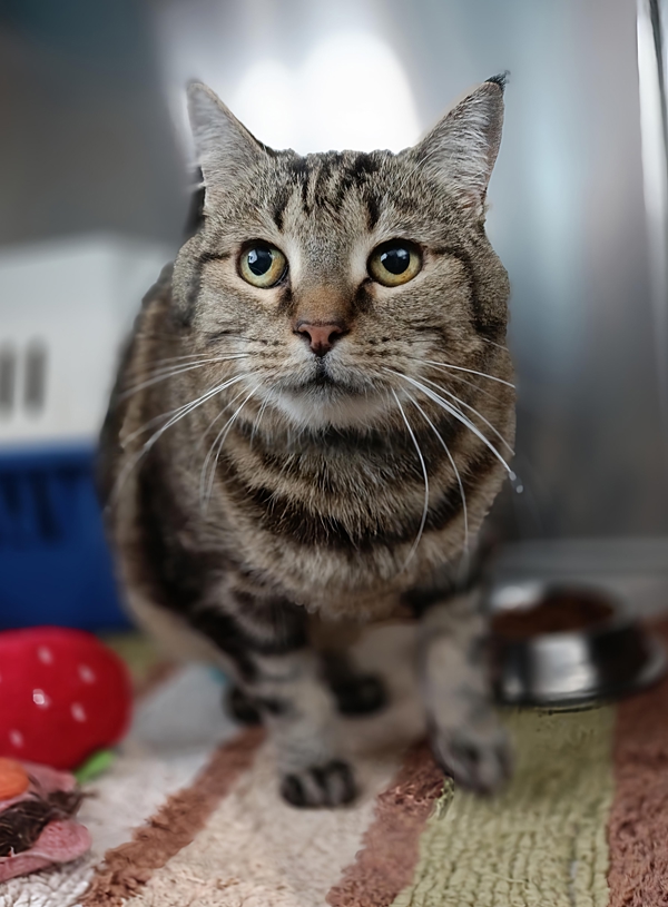Shadow is a gorgeous 8-year-old tabby girl with a big personality to match her beautiful looks. She's a social cat who enjoys being part of the household, though she's not afraid to show a bit of sass when she's feeling opinionated. Shadow is a solid girl with big bones (not fat, she promises!) and could benefit from shedding a little weight with the right routine and diet.