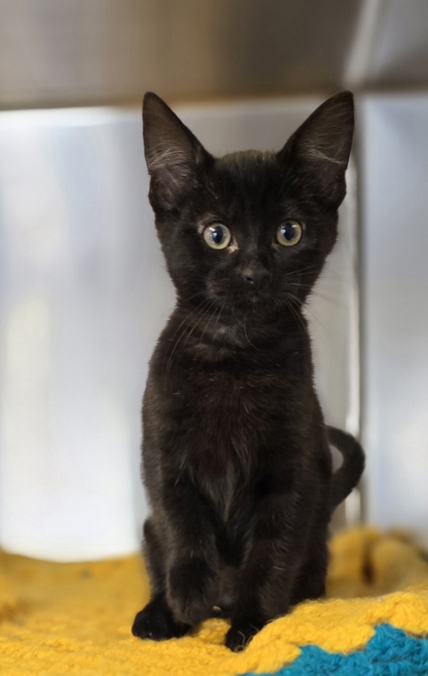 Herbert is a 3-month-old black Domestic Short Hair with a big personality packed into a tiny body. He's friendly, outgoing, and endlessly playful-the kind of kitten who trots over to say hello and turns everything into a game. Whether he's chasing toys, exploring his surroundings, or soaking up attention, Herbert is always up for fun and affection.