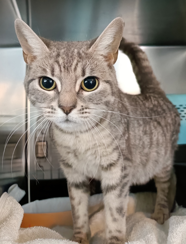 Meet Crumble, a pretty female Domestic Shorthair with a soft silver tabby coat who's ready to melt into your heart. She's a quiet, easy-going lady who loves nothing more than gentle pats and calm company. Crumble doesn't demand constant attention - instead, she offers a serene presence and tender affection to those who take the time to sit with her. With her even-mannered temperament and loving nature, she's the perfect companion for someone seeking a peaceful, loyal feline friend.