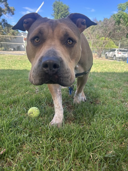 I'm looking for a loving home with older kids (pending a meet and greet), and I might be able to live with another dog if we get along. I can happily settle in with full-time humans who can give me love and patience while I grow into my big, sweet self.