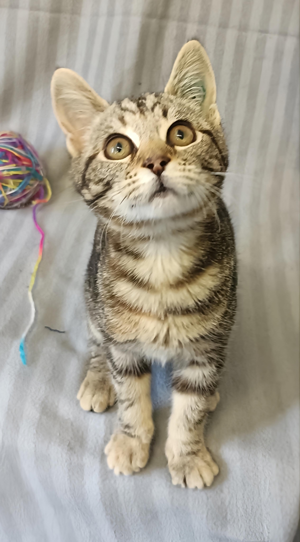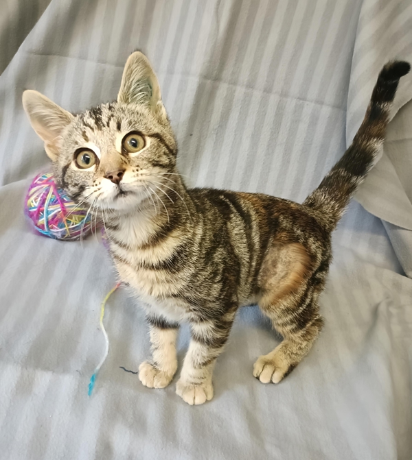 Ellis is a stunning tabby/torti kitten with outstanding flame-orange accents glowing beautifully through her tabby coat. She's as eye-catching as she is delightful, with a bright, expressive little face that matches her big personality. Ellis is social, energetic, and full of playful charm - always ready to chase a toy, explore her surroundings, or bounce into her next adventure.
