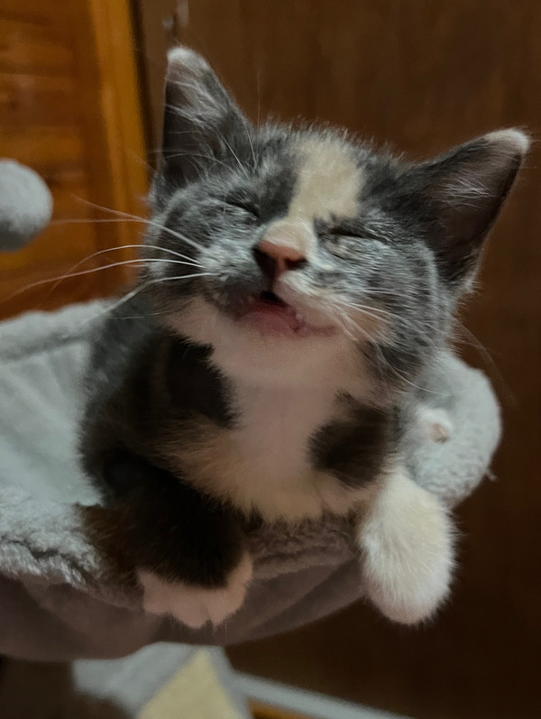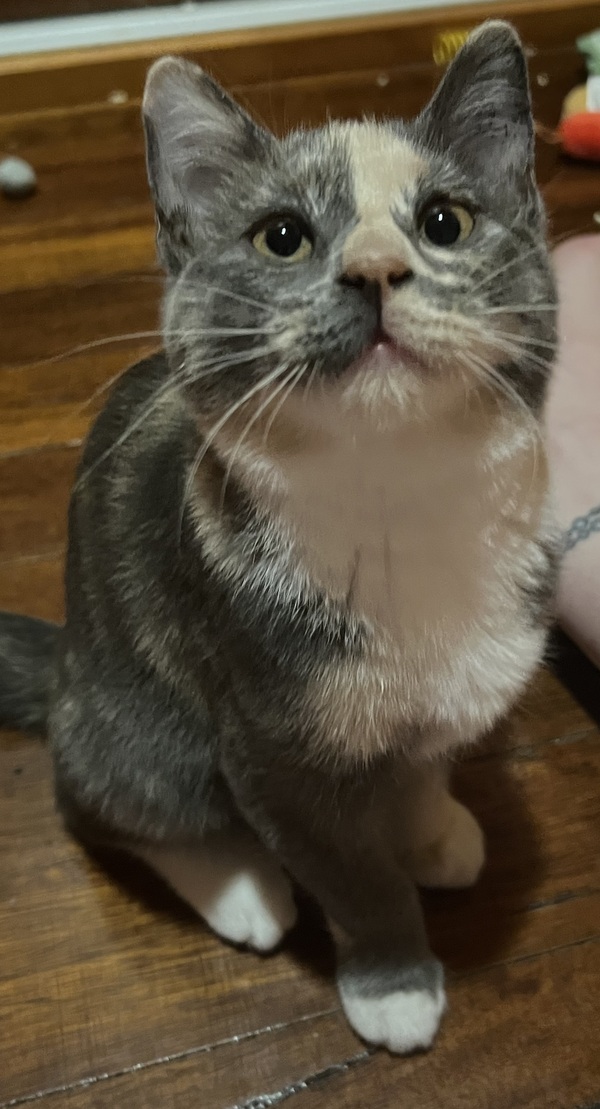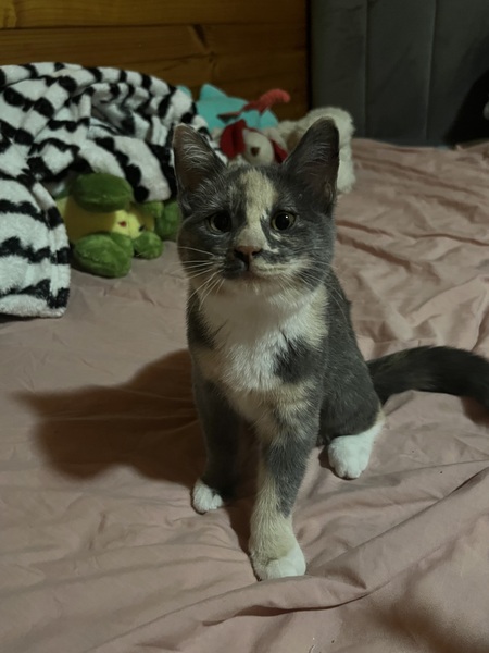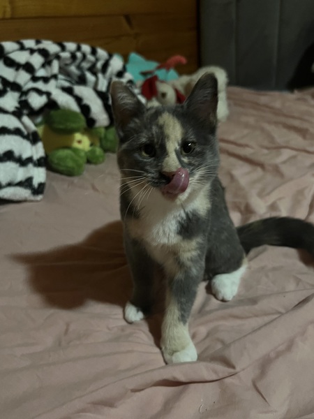 She earned the name Little Onion from the vet team after her finders (with kind intentions but not the right knowledge) tried to feed her onion soup. Her foster family quickly fell in love with her and gave her the nickname Lolo, which suits her sweet, spicy, and slightly dramatic personality perfectly.