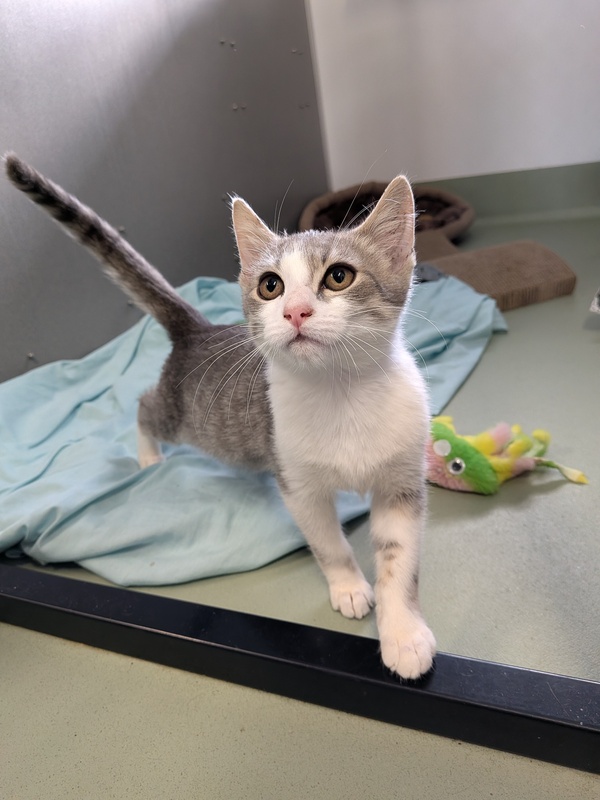Fred is a cheerful little guy with bright eyes and a heart full of love. He might hesitate at first - new things can be a lot when you're small - but once he warms up, he's all purrs, head bumps, and happy wiggles.