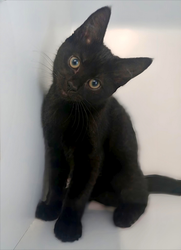 Lumo is also wonderfully social and enjoys being part of the action. She thrives on interaction, whether it's playtime with other kittens or spending time with her people. With her shiny black coat, bright eyes, and lively spirit, Lumo is a delightful little companion who's ready to bring love, laughter, and endless entertainment to her forever home.
