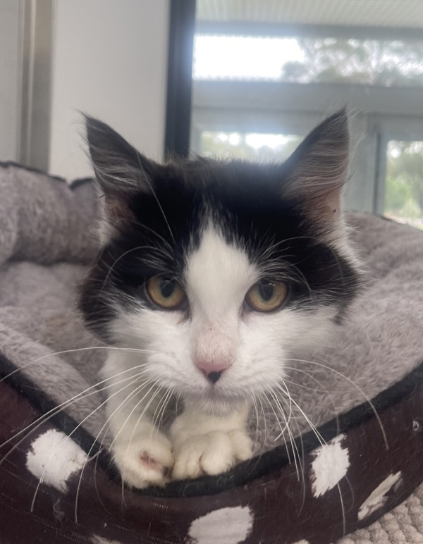 Mittens is a sensitive soul who builds trust slowly, but once you're in her circle, you'll see just how endearing she truly is. She can't resist a good wand toy session and is always more courageous when tasty snacks are on the menu!