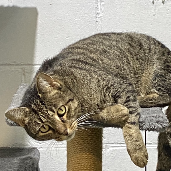Clover is the type of cat you'd call a "dangler" - happily letting her tail and legs flop over the edges of her cat tower like she hasn't got a care in the world. Apparently it's a bit of a Facebook trend these days and Clover would like to take credit for that. She's got other standout talents too - her never-ending kneading sessions could rival a professional baker, and when it comes to lap warming, she's in a league of her own. Not bad at all for a former "farm" cat turned full-time 'snuggle bug'. She's made the right call - why chase mice when you can spend oodles of time with your human?
