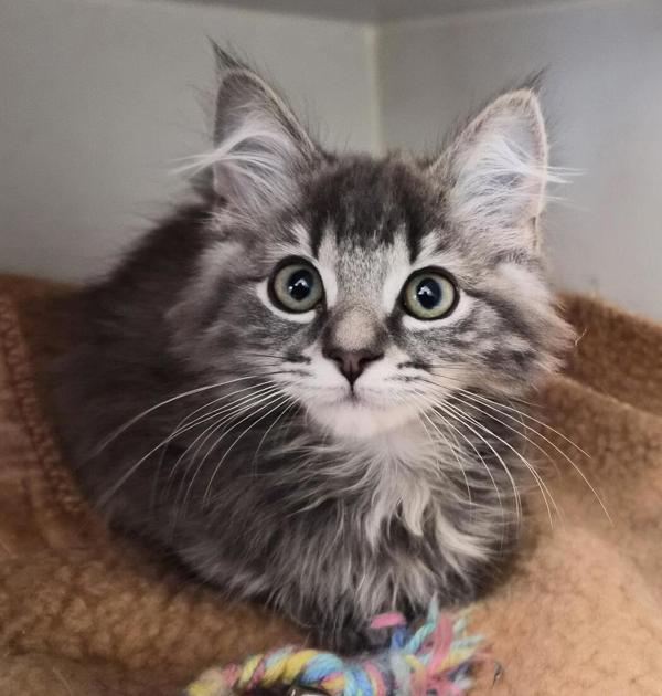 I am full of that good kitten energy and I love to play! There's never a dull moment when I'm around! I would be thrilled to join a family who can shower me with affection and keep me entertained with toys and games. I'm also a delightfully chatty kitty who is ready to share thoughts, opinions, and gossip I see from the windowsill. After a big day of playing, eating and napping, I would love nothing more than to be snuggled up with my family on the couch watching tv.
