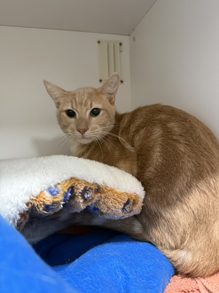 I'm a gentle, thoughtful cat who likes to take life at a slower pace. New places and loud surprises can make me a little nervous, so I'm the kind of fellow who prefers a calm, cozy home where things feel safe and predictable.