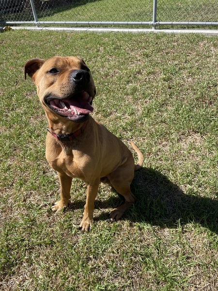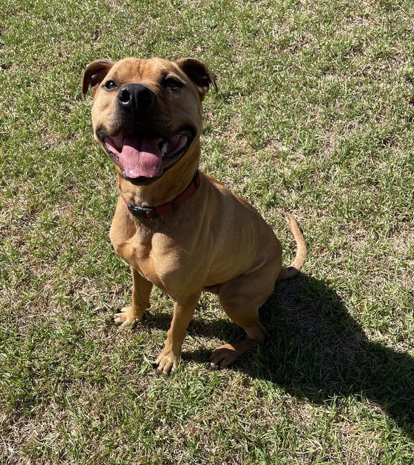 Rusty is a happy, energetic boy who absolutely loves life and isn't shy about showing it! He gets very excited and can be a bit jumpy when he's having fun, so he'd be best suited to a home with older kids who can handle his enthusiasm.