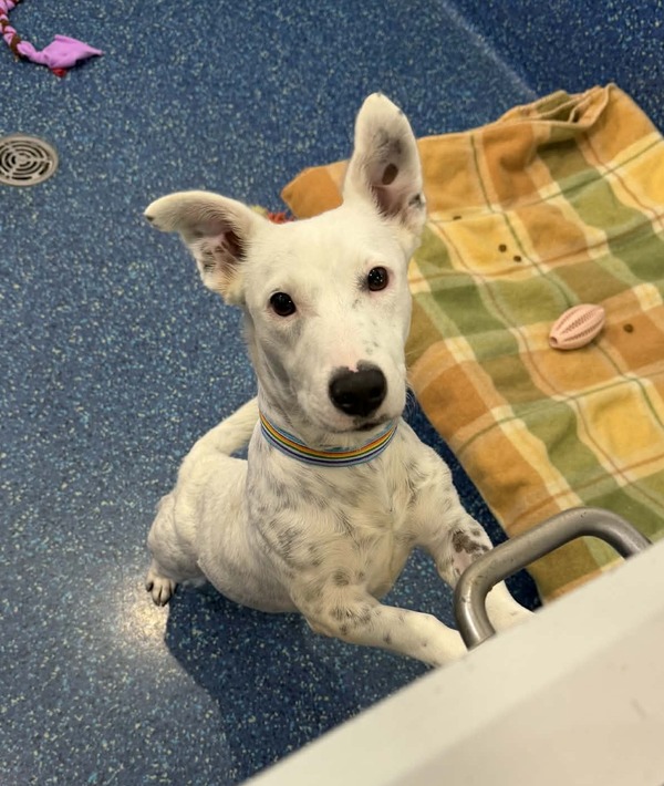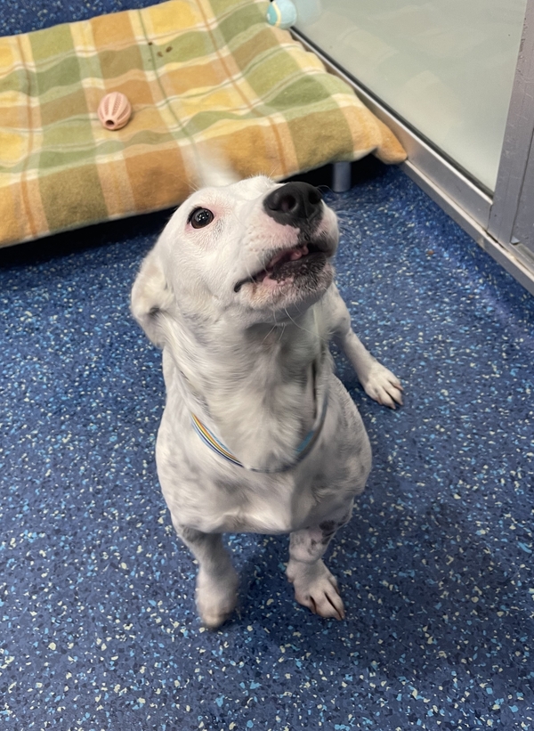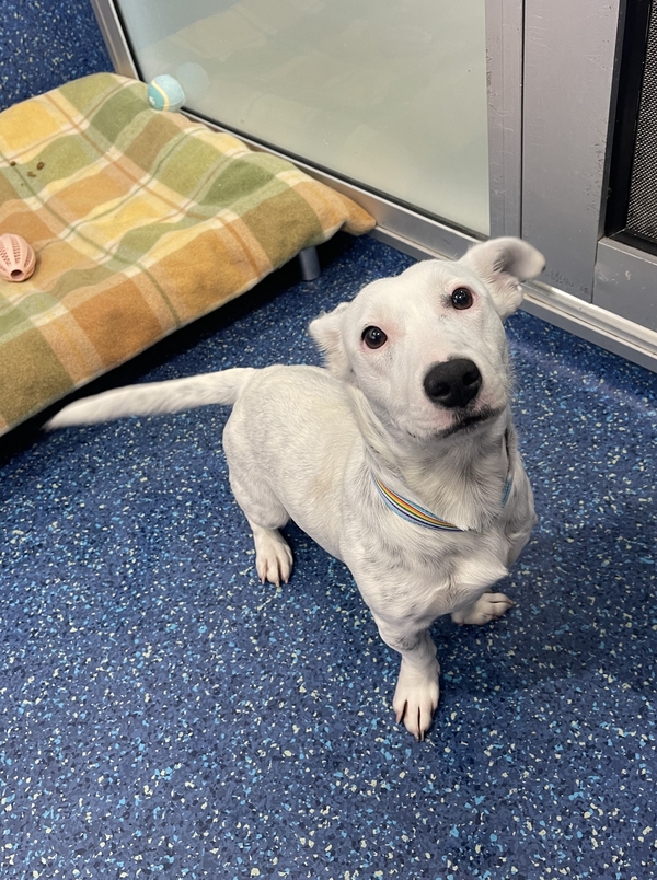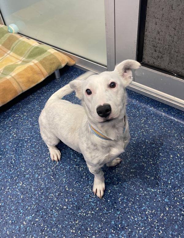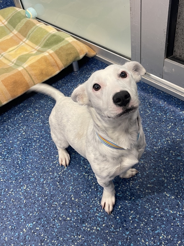This cheeky, bouncy, and sensitive little lady is full of personality and charm. She has a playful spirit, but she can also feel worried in new environments. When she first came into care, she was quite fearful, so she'll need a patient and understanding owner who can give her the time and space she needs to settle in at her own pace.