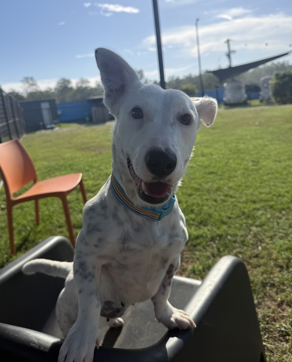 With consistency and gentle guidance, she will thrive. She would do best with someone committed to continuing her positive training, focusing on calm behaviours and basic manners. Providing structure in her day-to-day routine will help her feel more secure, and a crate or quiet space would give her a safe place to relax and unwind.