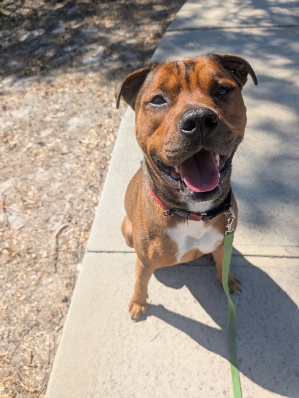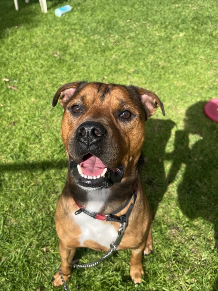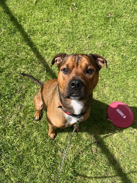 Hi, I'm Kai! I'm a happy, bouncy boy with a big heart and an even bigger love for life. I can get quite excited at times-I'm just so happy to be around my people-so I'd do best in a home with older kids who can match my energy and don't mind a bit of playful enthusiasm.I'm a really sweet soul underneath all that bounce. I love affection, enjoy being around people, and I'm always ready to brighten your day with my cheerful personality. I could happily share my home with another dog, especially a friendly female who wouldn't mind having a fun companion around.If you work full-time, that's okay too-I'm quite adaptable and can settle into a routine. As long as I get my love, playtime, and attention when you're home, I'll be one very content pup.If you're looking for a loving, lively friend who will keep you smiling, I might just be your perfect match